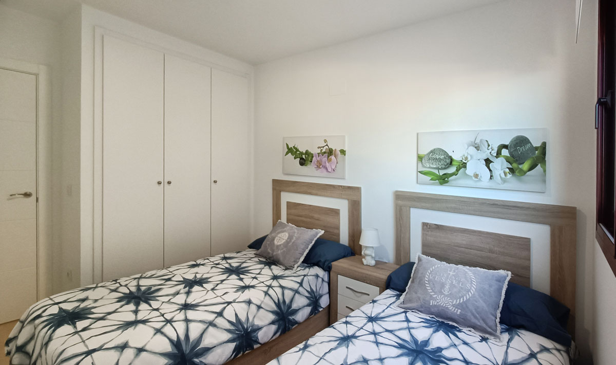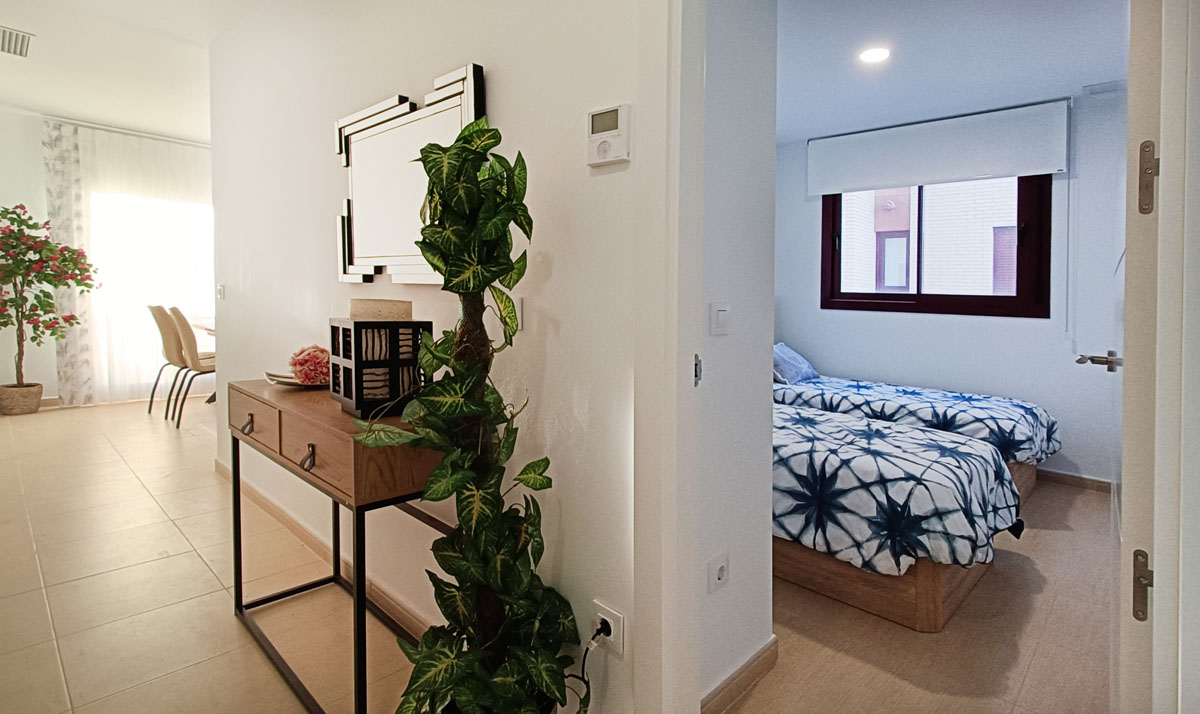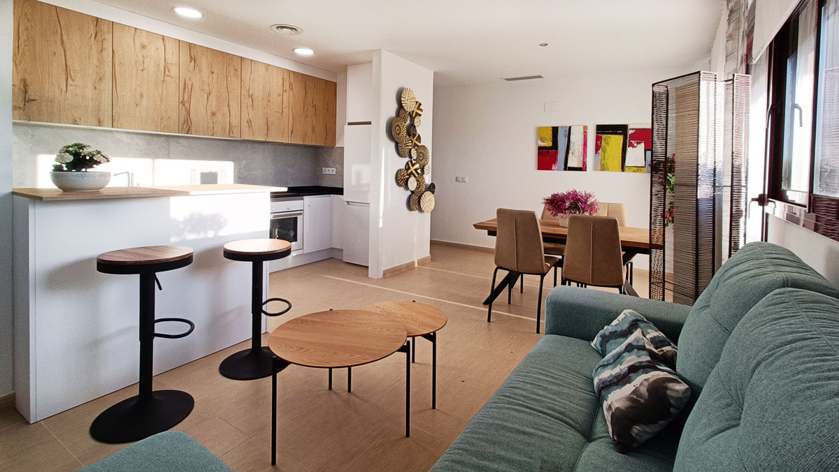 El edificio consta de 60 modernos pisos diseñados para aprovechar al máximo la luz natural y el espacio. Cada vivienda dispone de dos amplias habitaciones, un acogedor salón ideal para el descanso y la convivencia, un baño completo y una cocina totalmente equipada con electrodomésticos de alta calidad, incluyendo lavadora, lavavajillas, nevera, horno y vitrocerámica, pensados para facilitar el día a día.